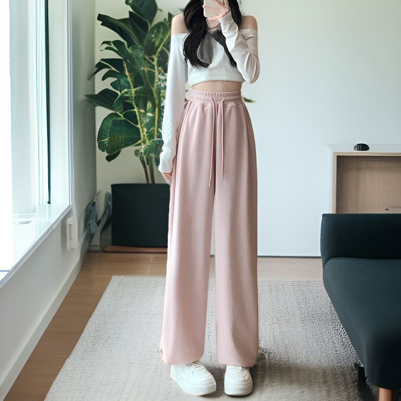 秋用ハイウエストワイドレッグトレーニングパンツ レディース